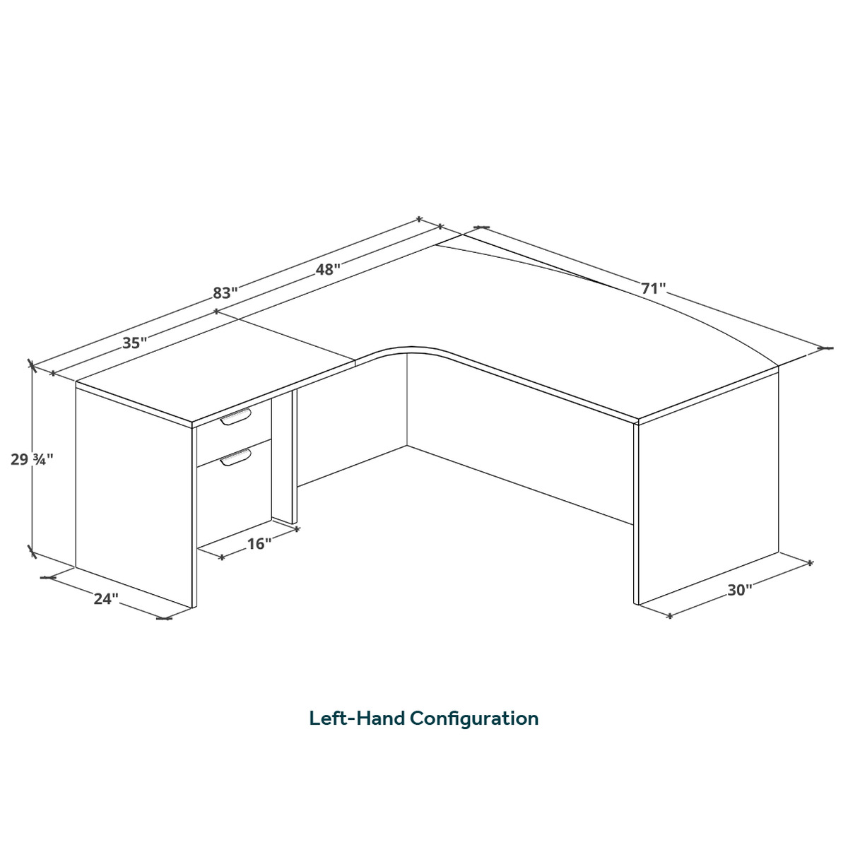 Classic L-Shape Bowfront Workstation 83" x 71" with Left Hand Return and Box/File Pedestal - Cherry