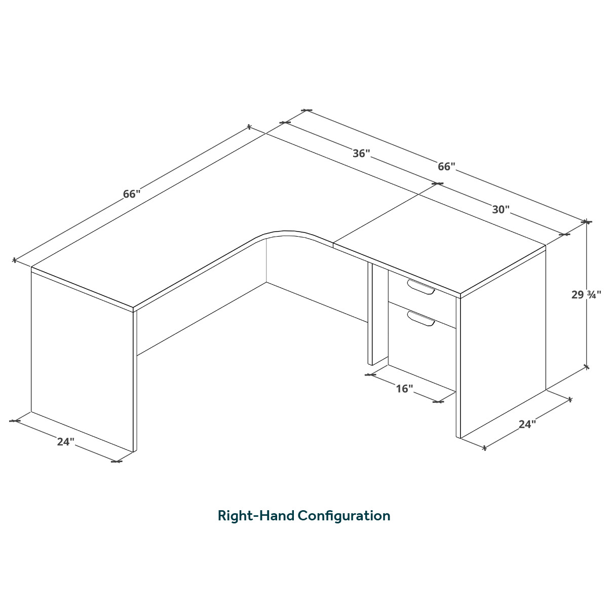 Classic L-Shape Workstation 66" x 66" with Right Hand Return and Box/File Pedestal - Espresso