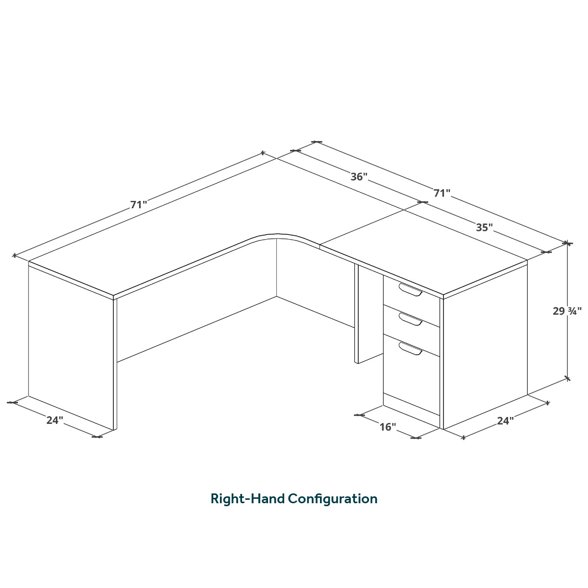 Classic L-Shape Workstation 71" x 71" with Right Hand Return and Box/Box/File Pedestal - Espresso