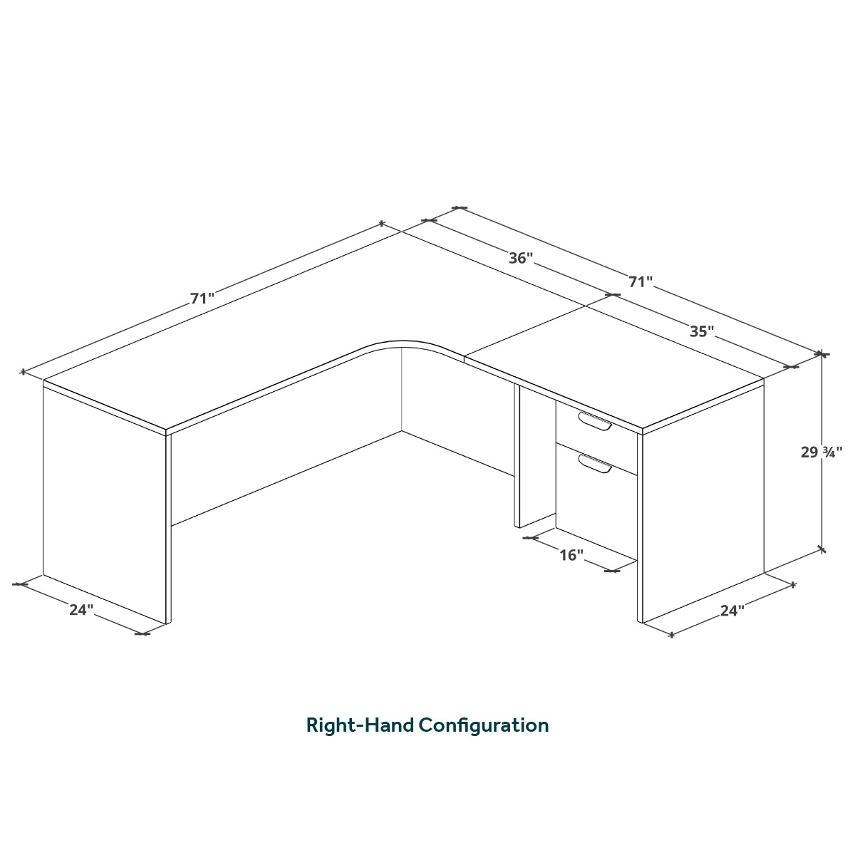 Classic L-Shape Workstation 71" x 71" with Right Hand Return and Box/File Pedestal - Espresso