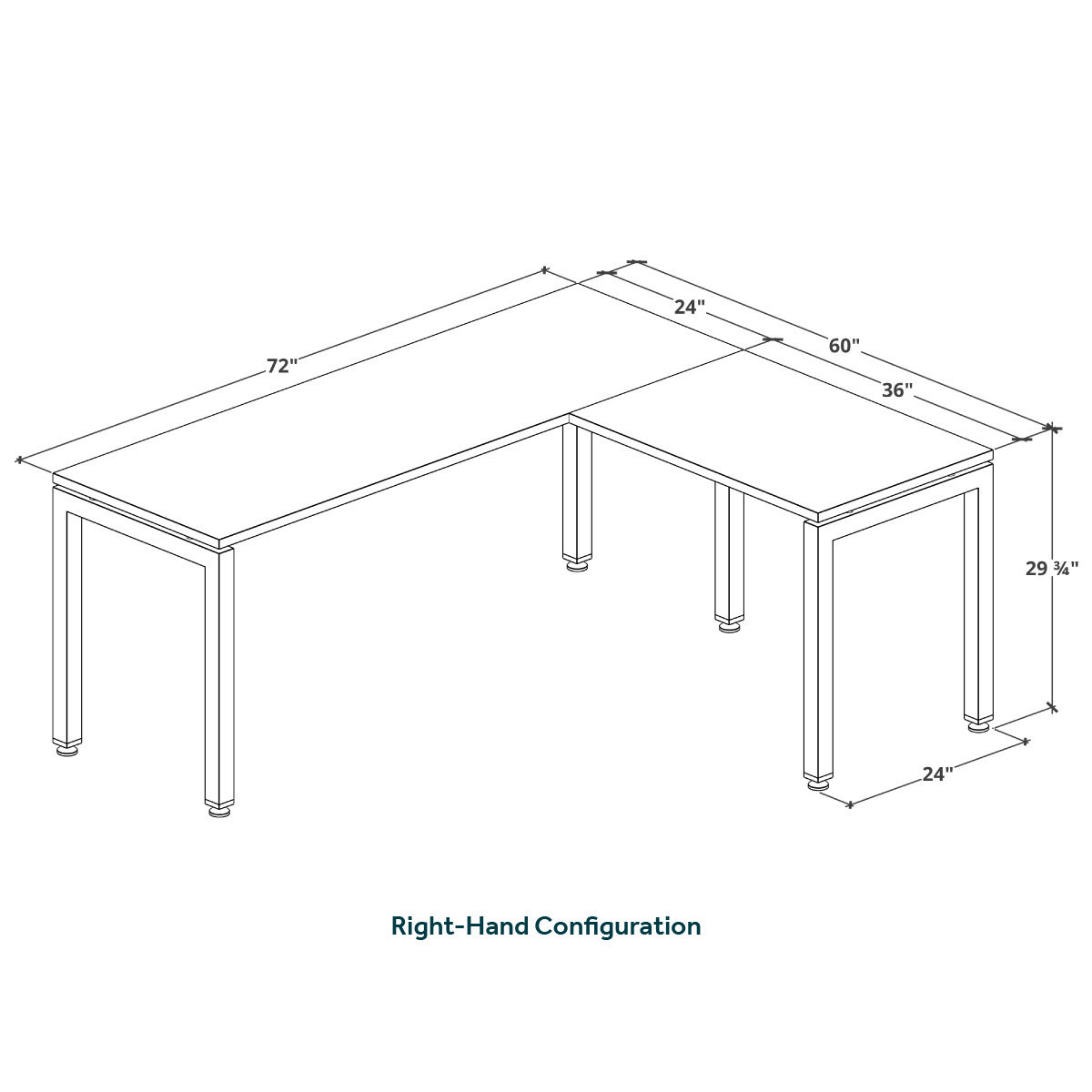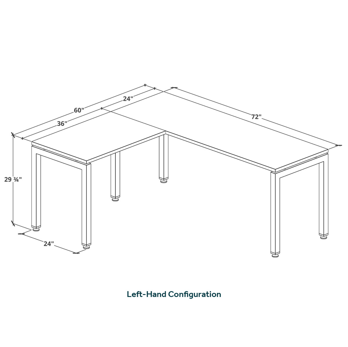 - Depth of main desk and return is 24"