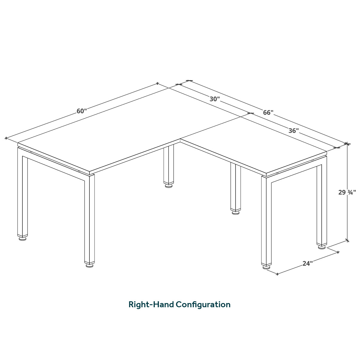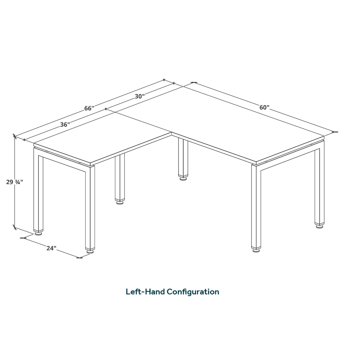 - Depth of main desk is 30" and depth of return is 24"