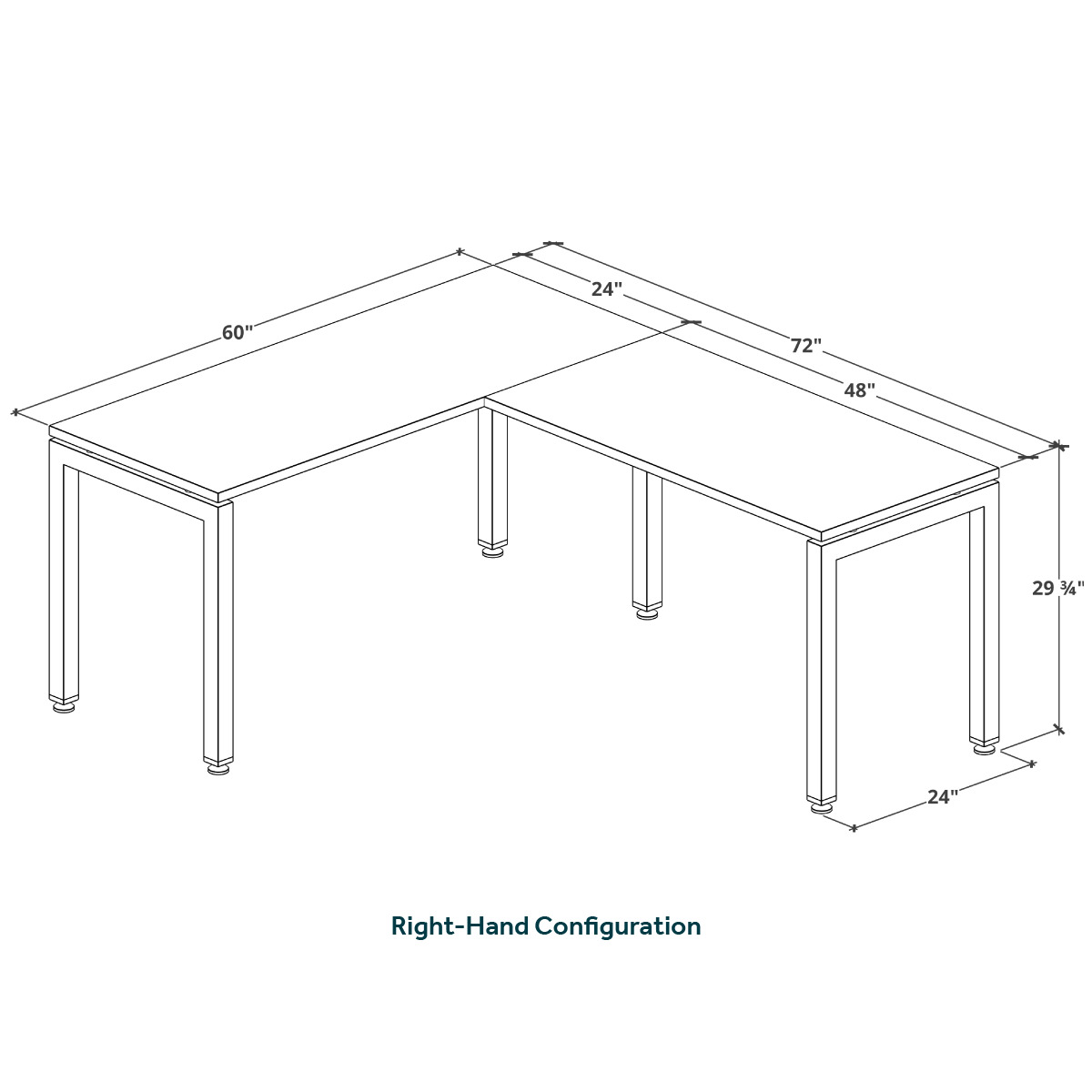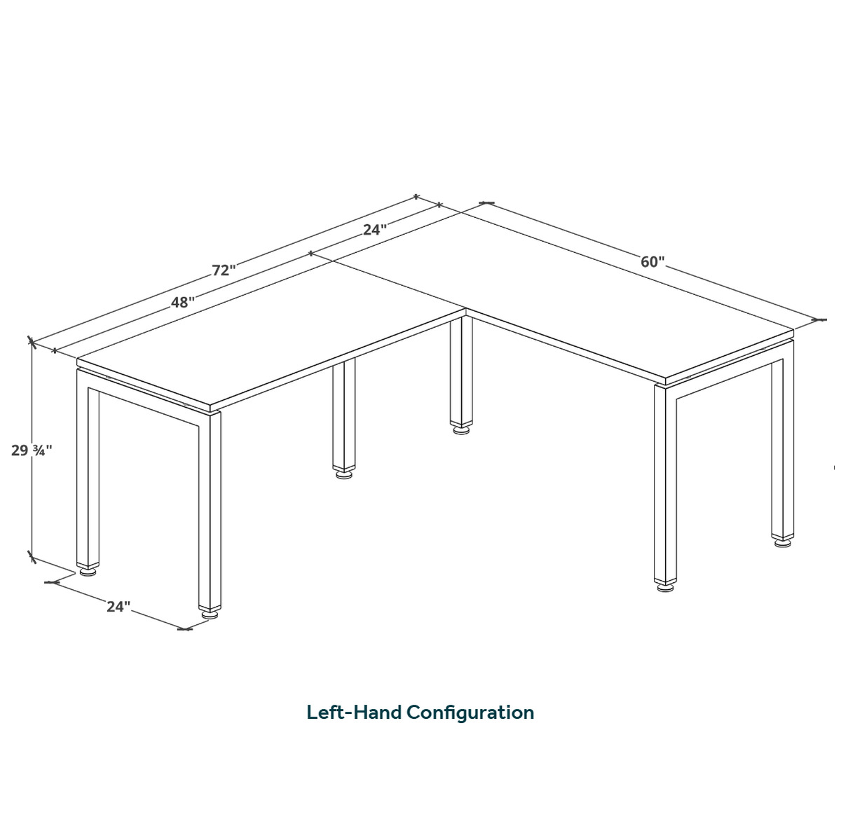- Depth of main desk and return is 24"