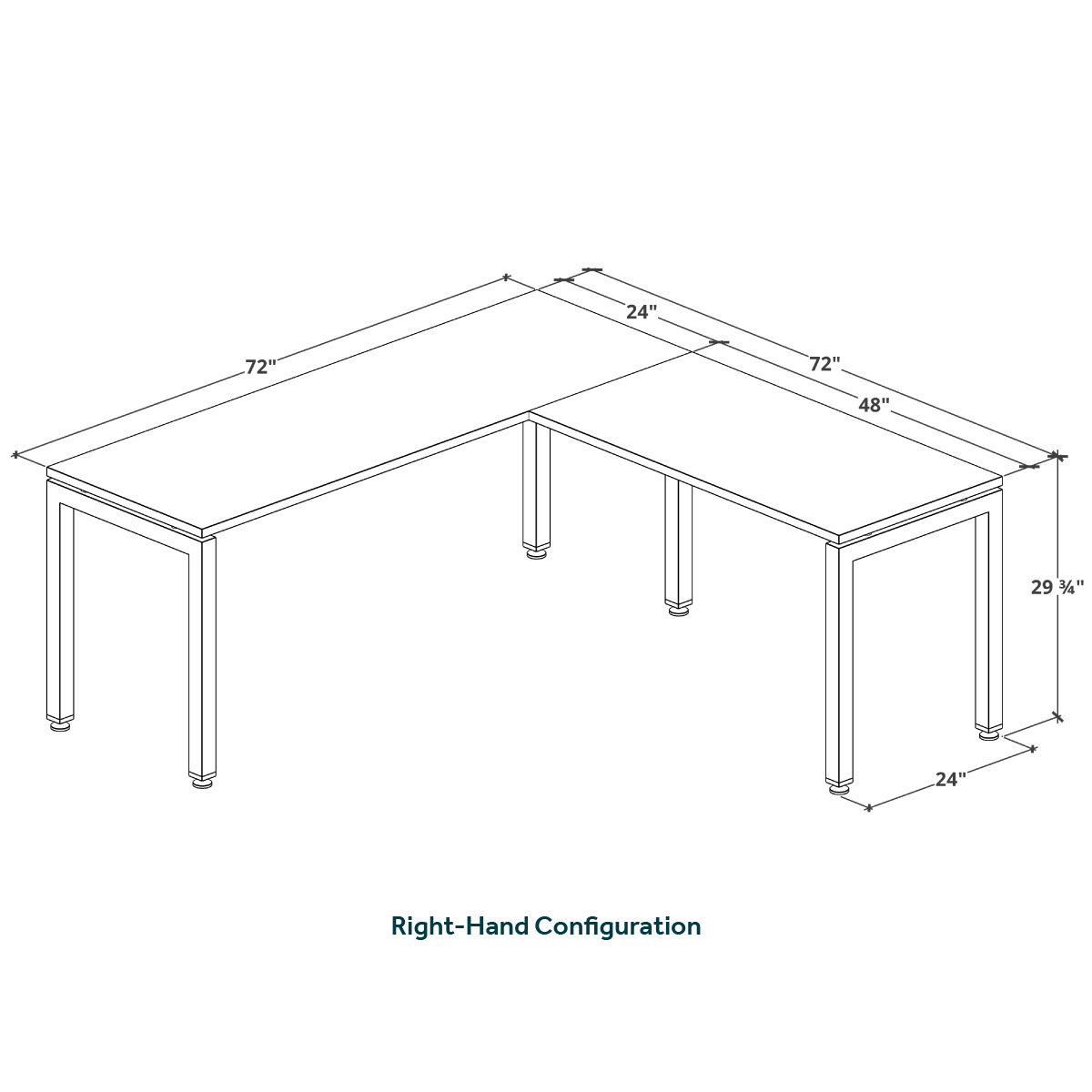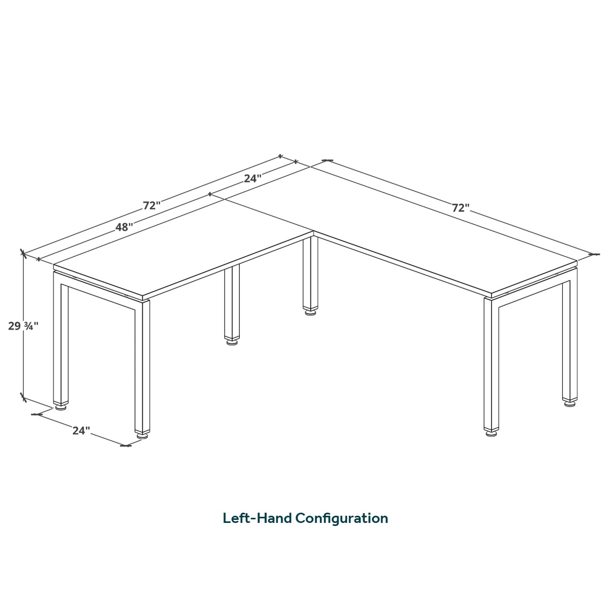 - Depth of main desk and return is 24"