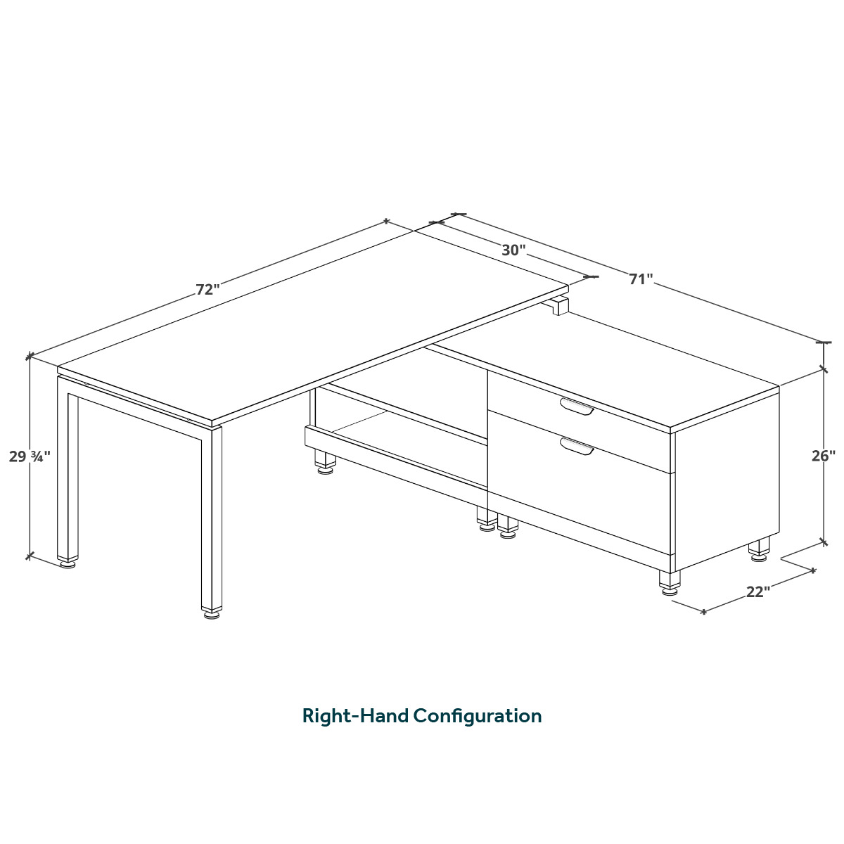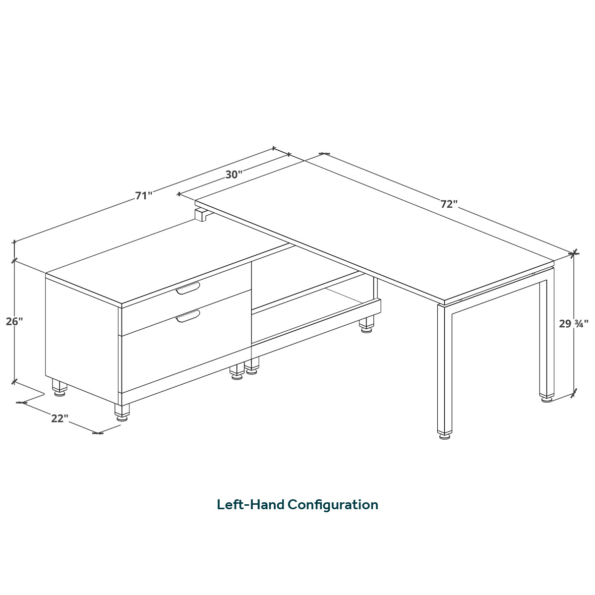 Designed with generous space and ample surface area that enhances productivity, the Elements L-Shape Workstation features a drop-down credenza that's perfect for organizing your office essentials.