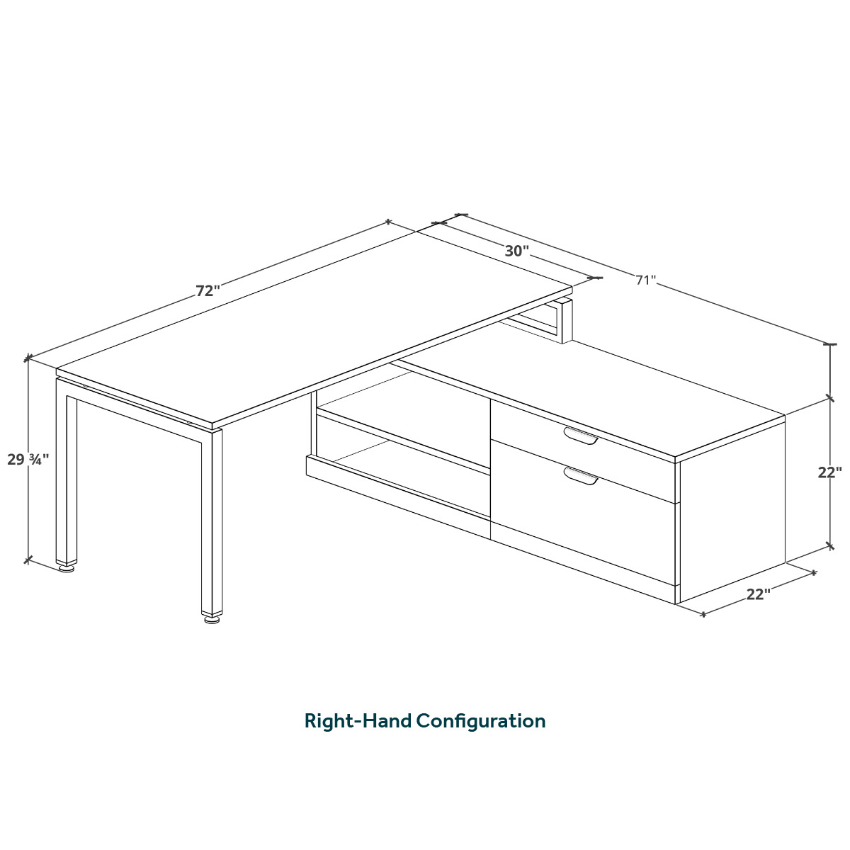 Watch your performance improve with the Elements L-Shape Workstation. Enjoy the simple design that provides a distraction-free space to get work done. The drop-down storage credenza offers open and closed storage that allows you to store and file various paperwork, supplies, and more.