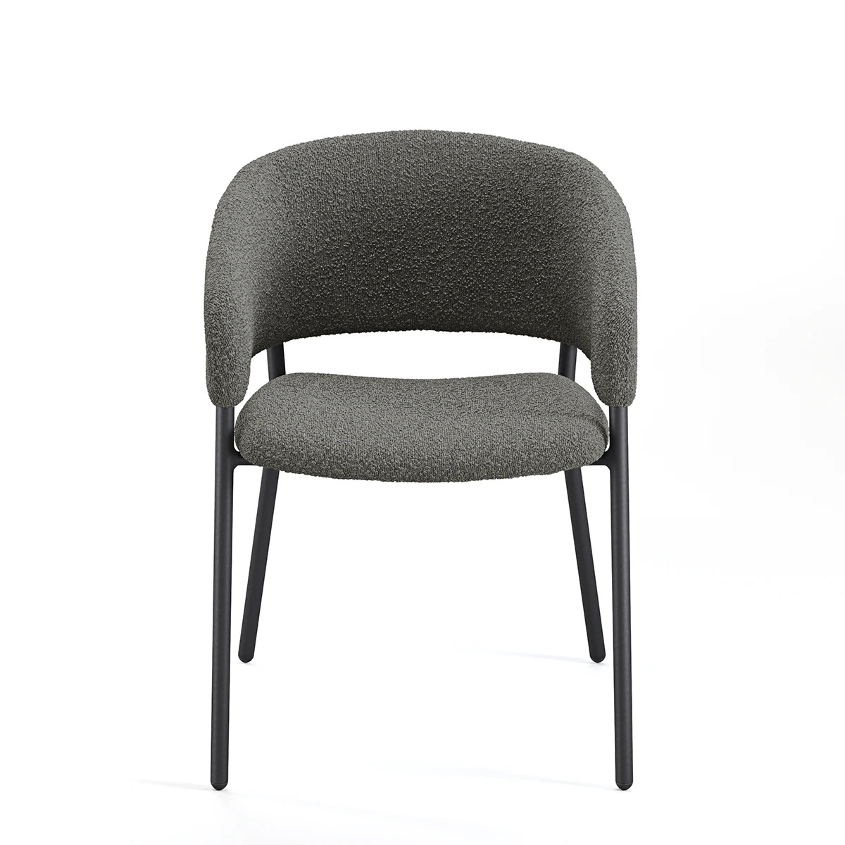 Jasmine brings a style-forward element to your office with a plush bouclé fabric that's as inviting as it is elegant. The sleek black metal frame is durable and sturdy, perfect for guest seating, reception areas, or lounge spaces that need a touch of flair and comfort.