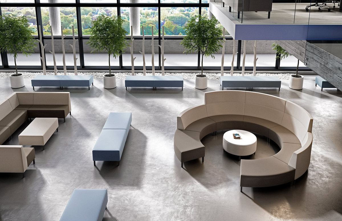 Create casual meeting spaces that bring your team together with the Unify collection by OFGO. This collection of modular soft seating features straight and curved components that are offered with three back heights, achieving different levels of privacy.Unify is available in a wide range of fabrics and materials that can be combined for a look that matches your style and office.
