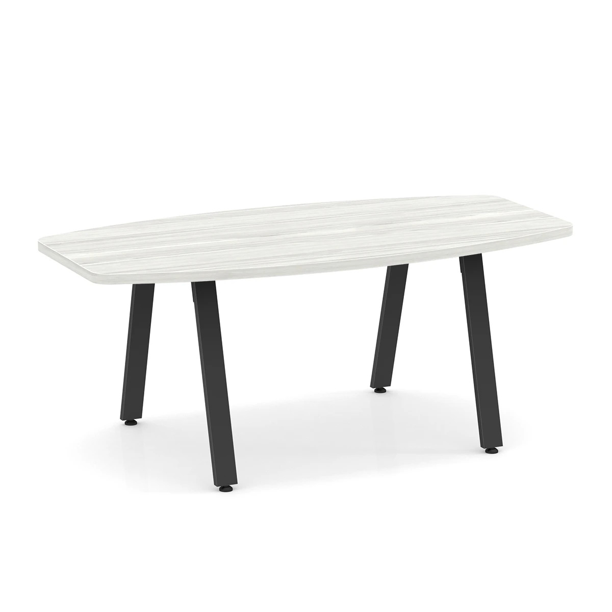 Signature Boat-Shape Conference Table 6 Ft - Silver Birch with Black Metal Legs