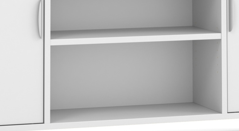 Optimize small spaces with the Signature Narrow Credenza. Perfect for hallways, small workspaces, and home offices, this compact credenza achieves the perfect balance between closed and open storage with two locking cabinets and shelves.