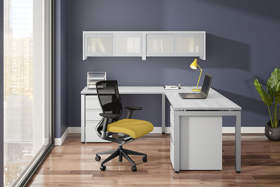 Collections like Signature, Elements, and Encore are designed to reduce bulk with an open leg architecture that keeps your office feeling fresh. If you’re after a light, airy, and crisp vibe, our Silver Birch and Aspen laminate colours carry vibrance throughout the office.
